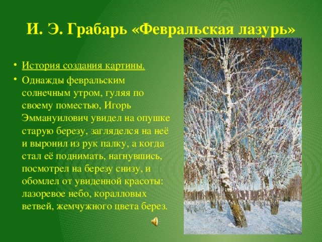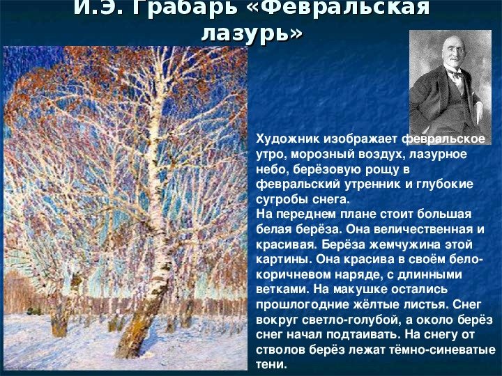 Грабарь Февральская лазурь описание