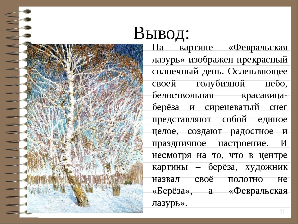 Сочинение по русскому и Грабарь Февральская лазурь