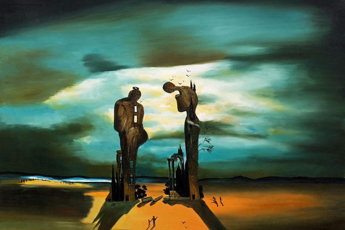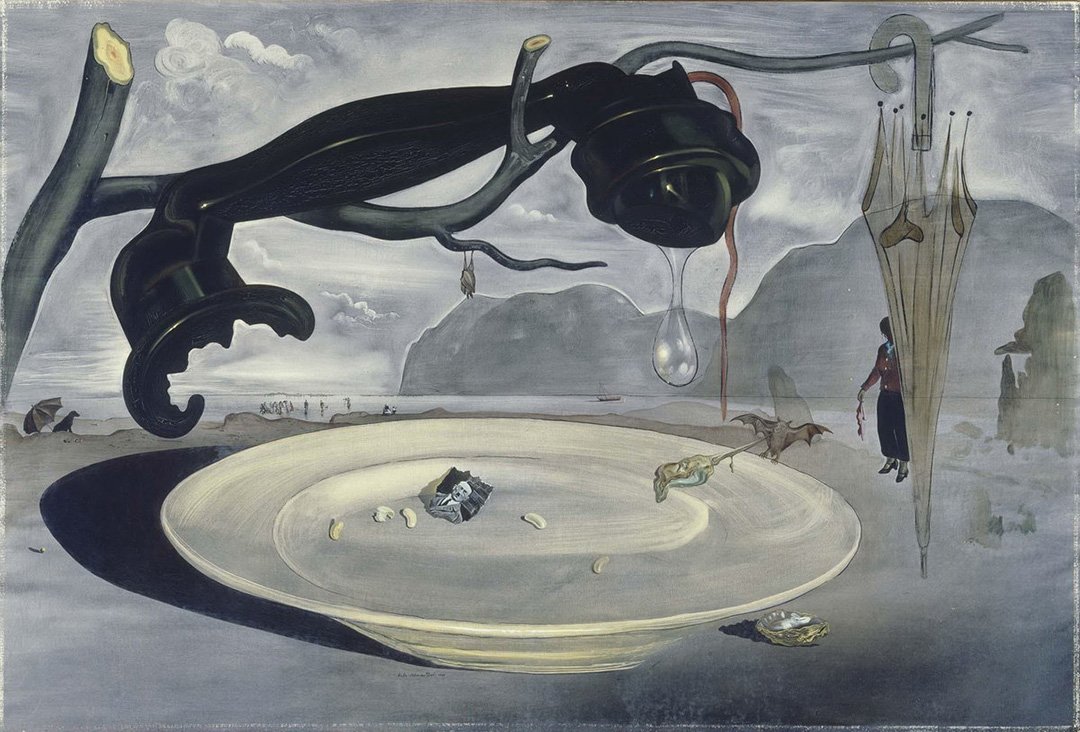 Сальвадор дали картина "явление лица и вазы с фруктами на берегу моря"