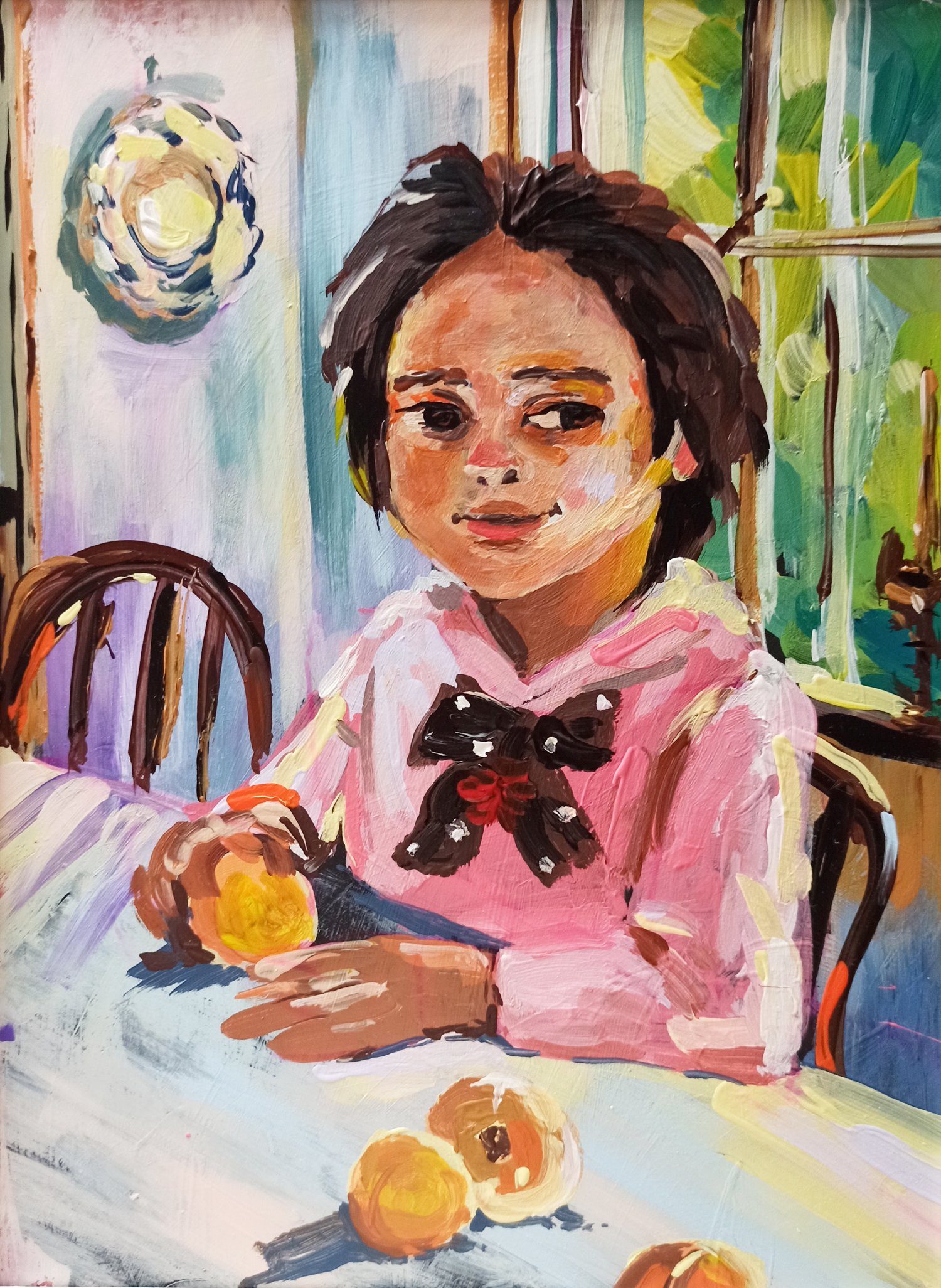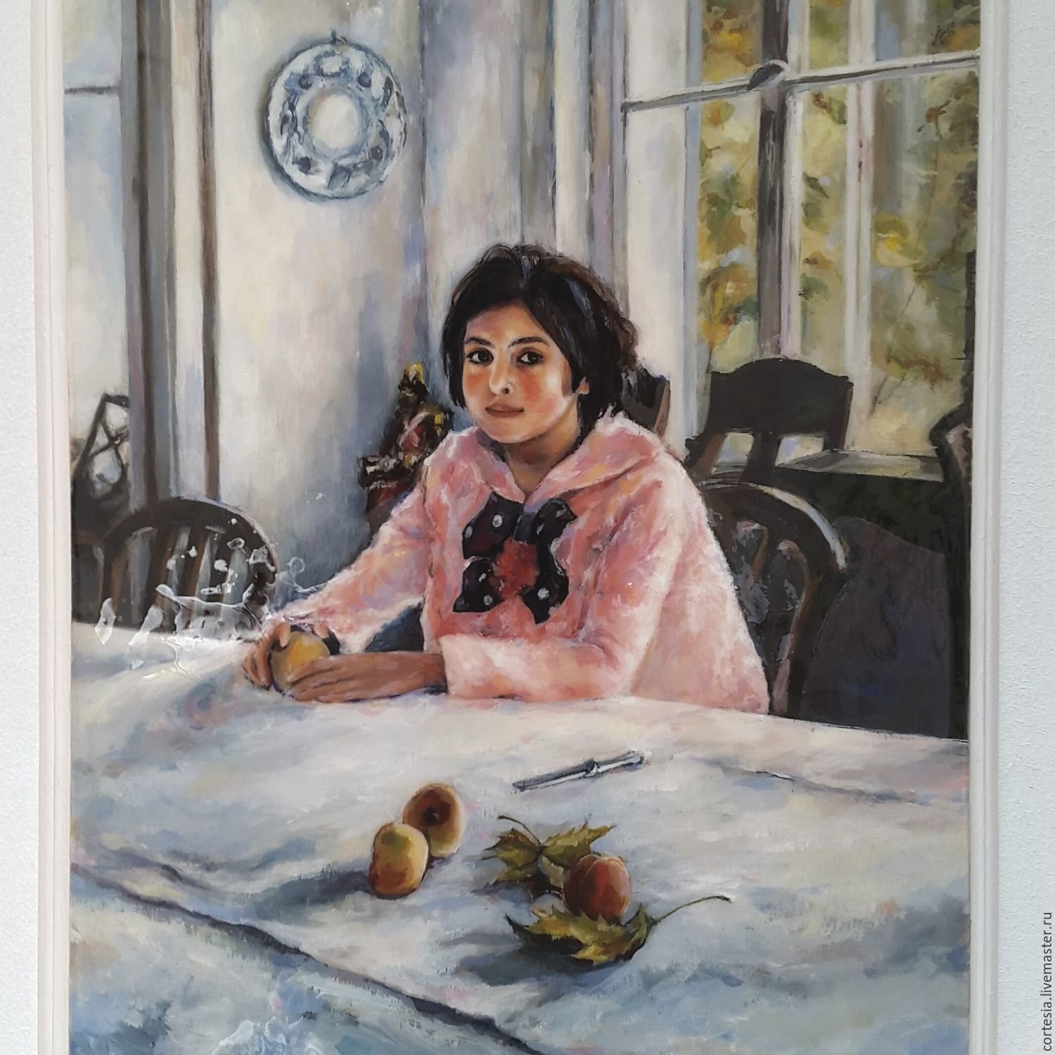"Девочка с персиками" - захватывающая и загадочная картина, которая пленит своей нежностью и тайной историей. Она передает момент, когда девочка, окруженная цветущими персиковыми деревьями, останавливается в своем пути, чтобы насладиться фрагментом природной красоты. Ее глаза полны любопытства и благоговения перед этой прекрасной картиной. Легкий ветерок развевает ее волосы и нежно прикасается к розовым лепесткам, создавая атмосферу свободы и мечты. "Девочка с персиками" воплощает идею о том, что в каждом мгновении простоты и красоты можно обрести счастье и вдохновение для души.