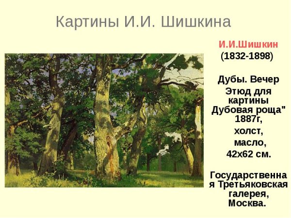 И. Шишкин. «Дубовая роща». 1887 Г.