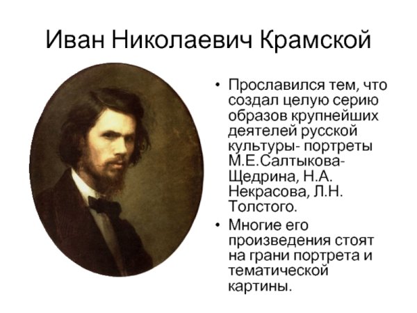 Иван Николаевич Крамской - выдающийся русский художник, чьи картины оставляют незабываемое впечатление на зрителя. В его творчестве особое внимание уделяется изображению человеческой души и ее эмоций. Крамской прославился своими портретами, которые проникают в самую глубину личности и раскрывают ее многогранность. Он мастерски передает каждую черту лица, каждое выражение глаз, создавая живые и наполненные эмоциями образы. Картины Ивана Николаевича Крамского отличаются своей атмосферой и глубиной, они заставляют задуматься и проникнуться происходящим на полотнах. Каждая его работа - это настоящее произведение искусства, способное поразить своей красотой и выразительностью.