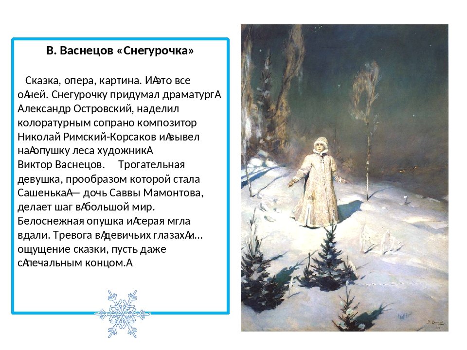 Васнецов Виктор Михайлович Снегурочка 3 класс
