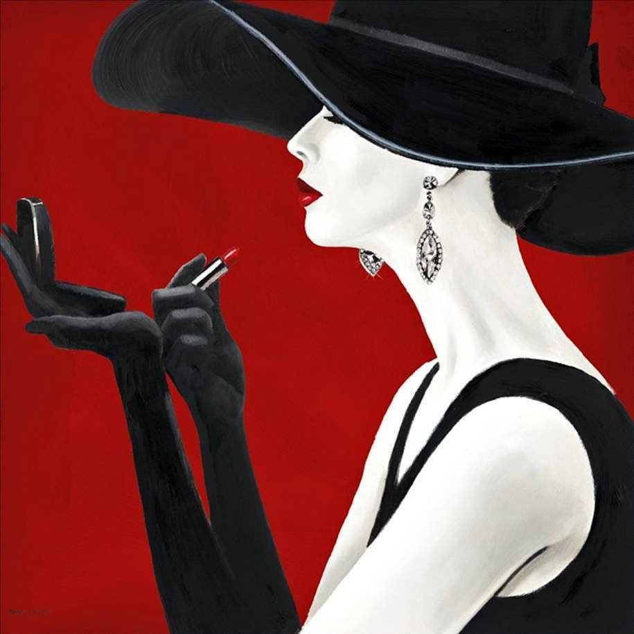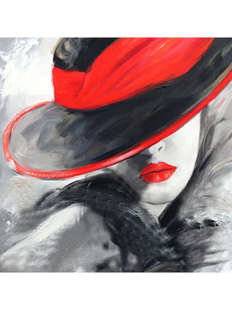 Картина женщина в шляпе с красными губами