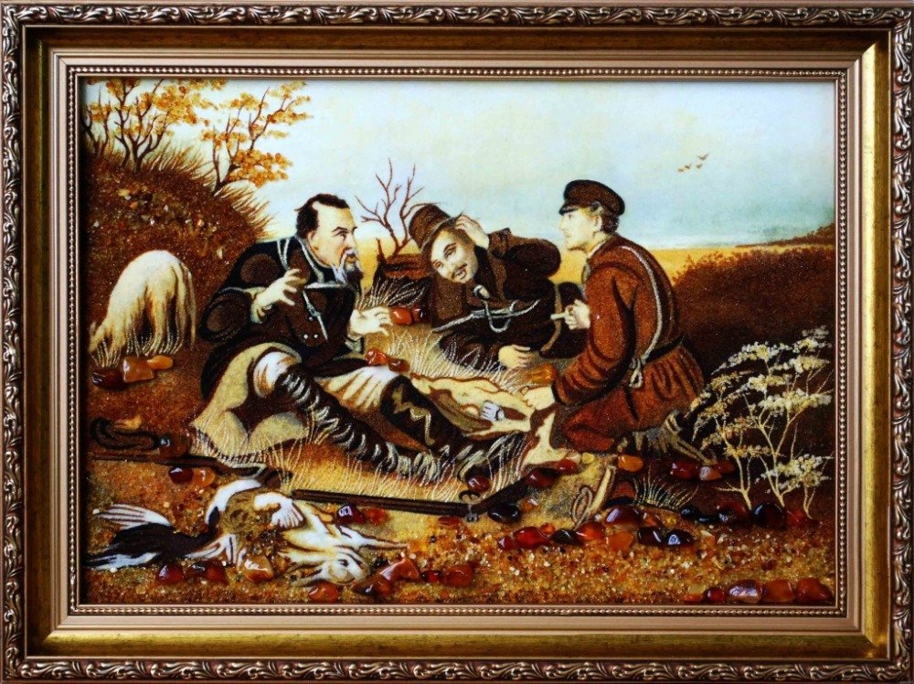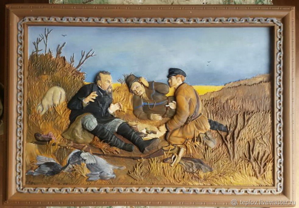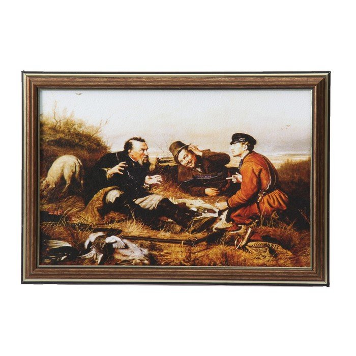 Охотники на привале картина резная