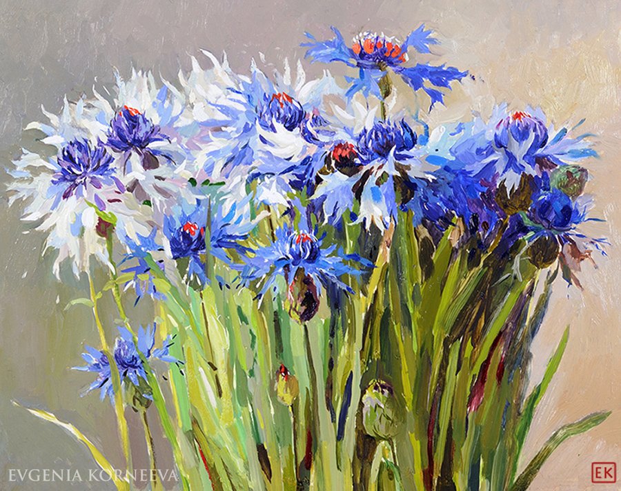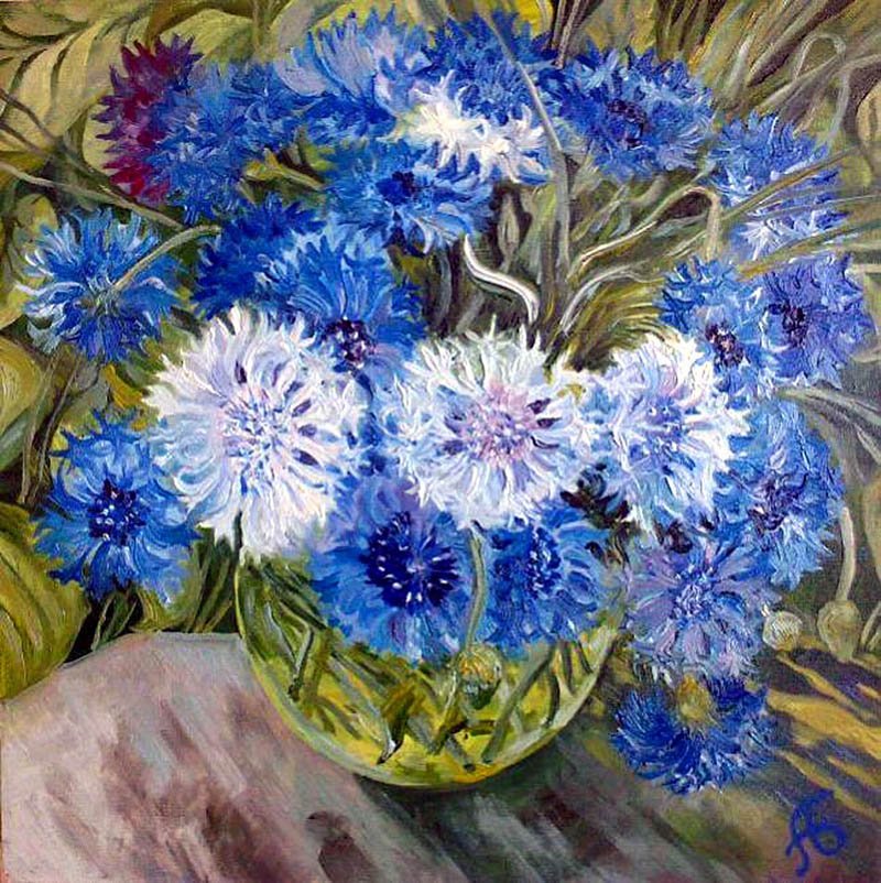 Васильки маслом на холсте