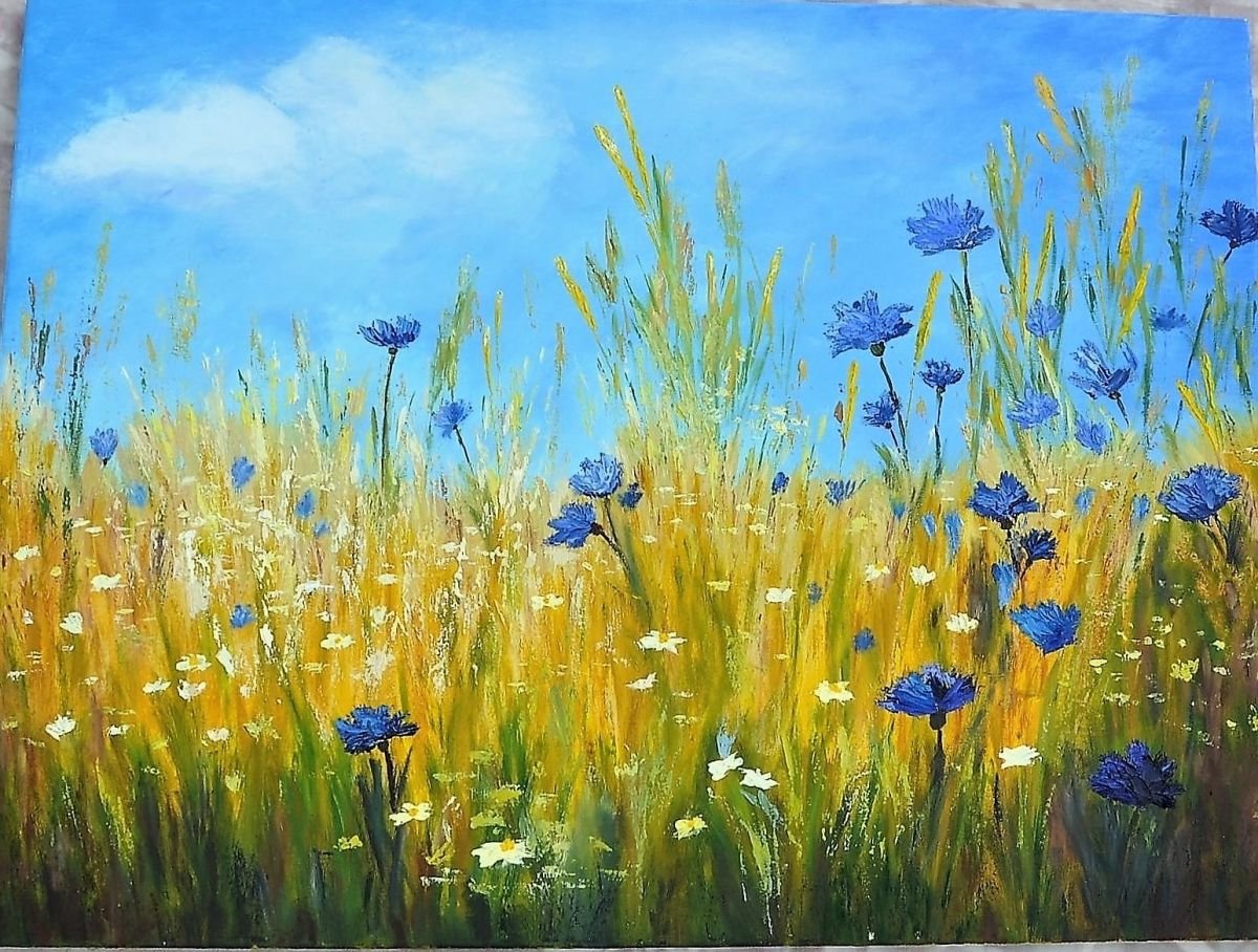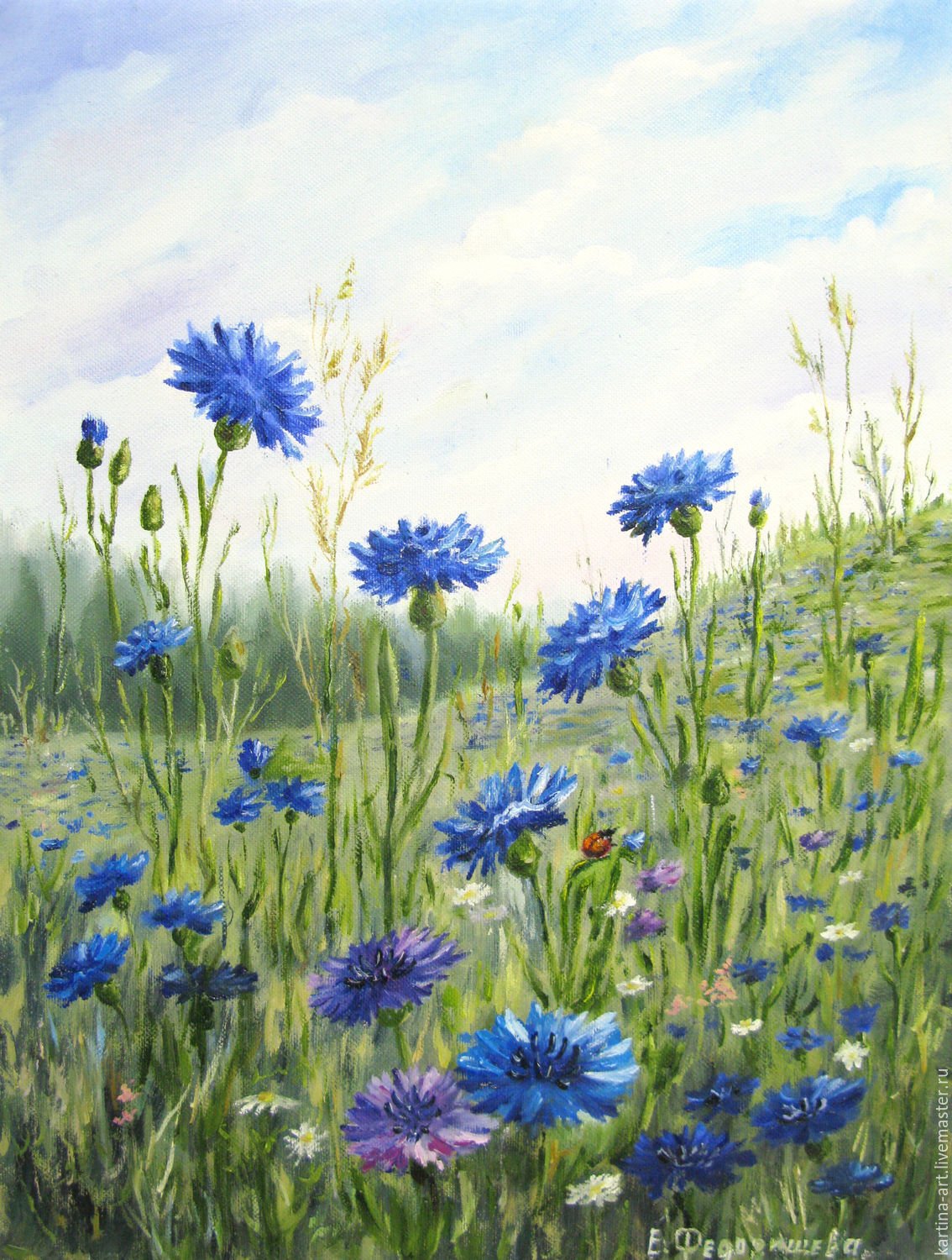 Васильковое поле живопись маслом