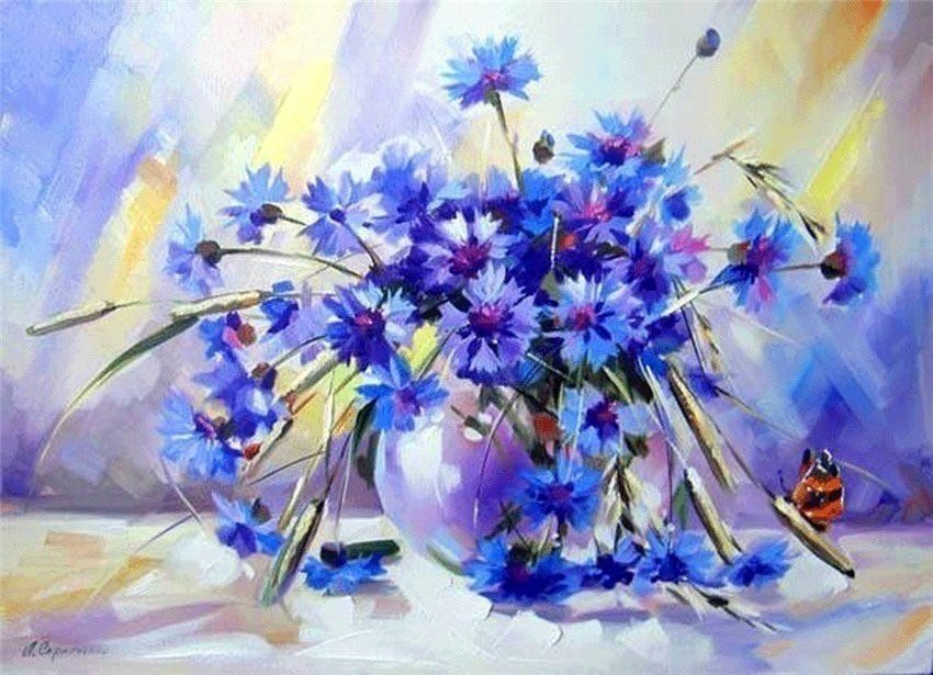 Васильки живопись маслом