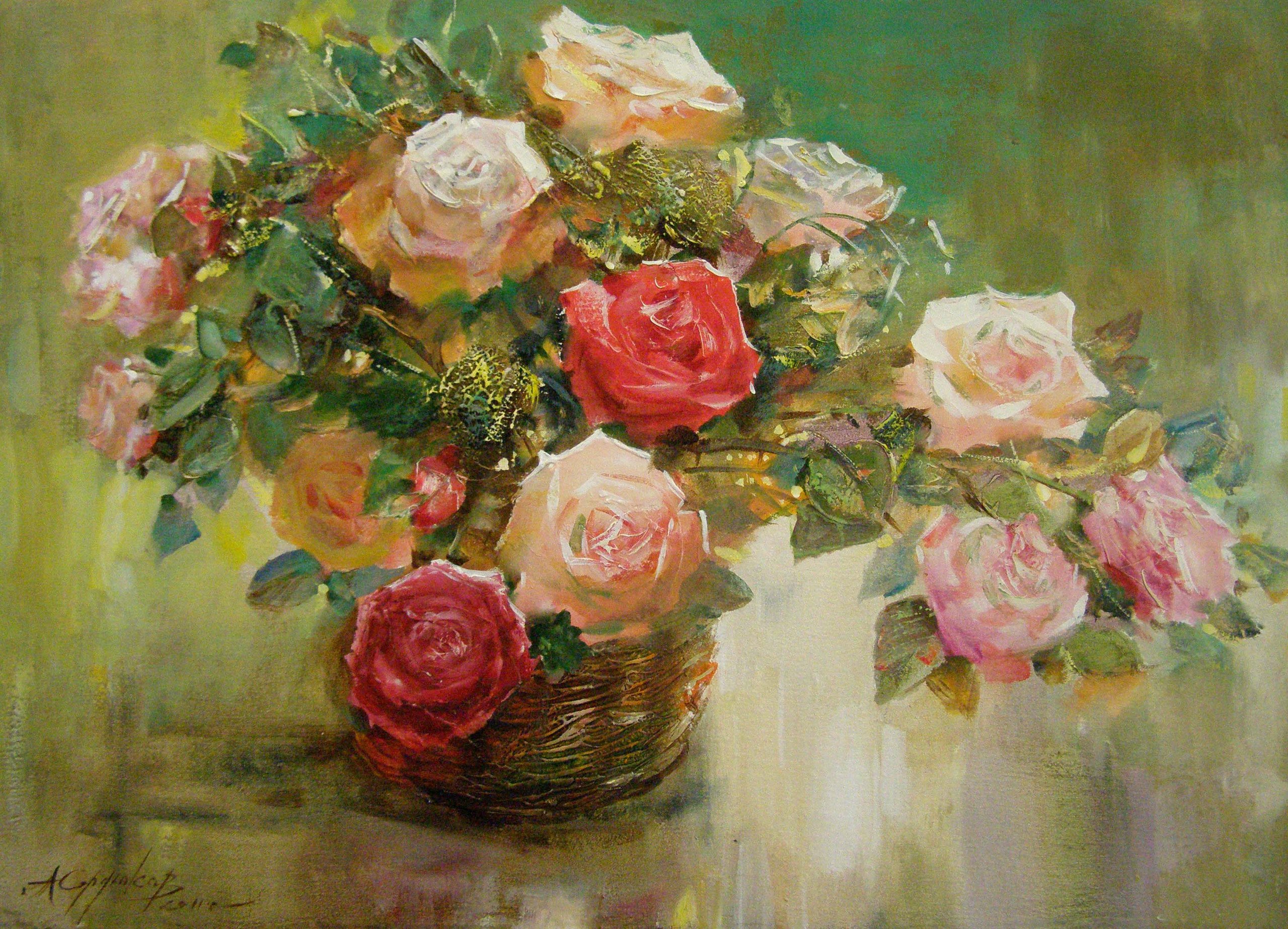 Картины Андрея Бельчева розы маслом