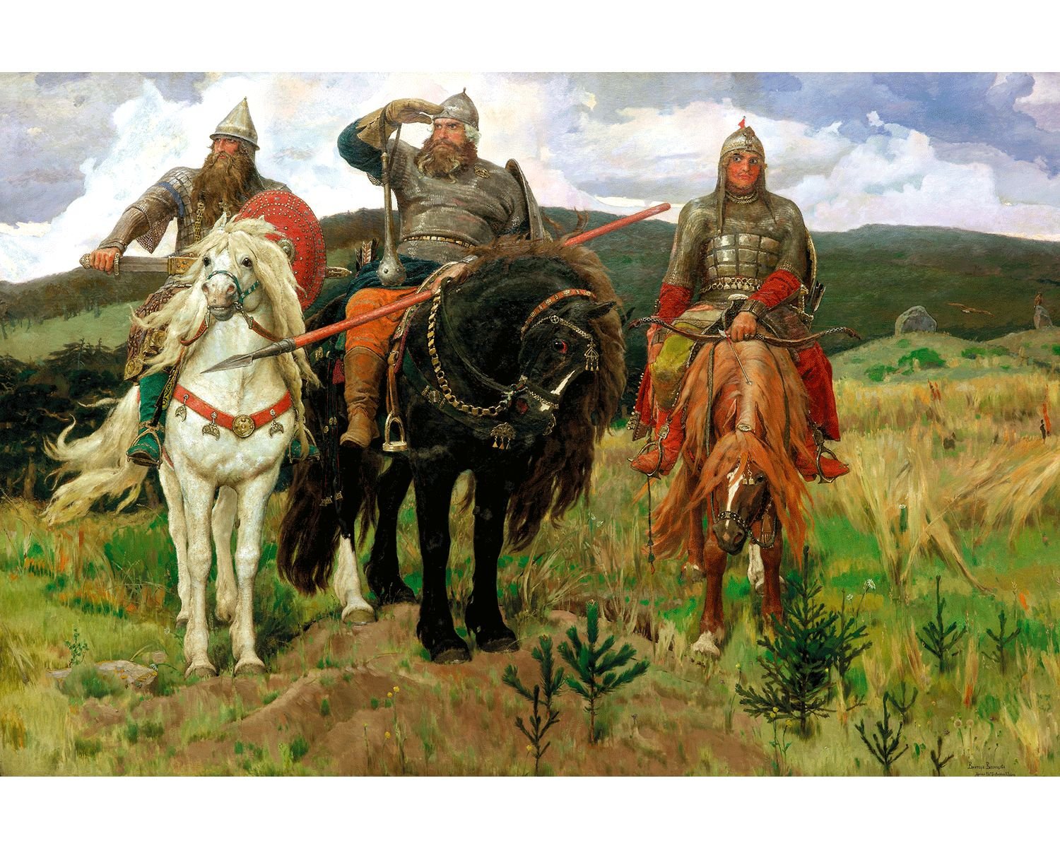 Одна из самых известных и восхищающих произведений русского художника Виктора Васнецова - картина "Богатыри". Величественные и могучие фигуры трех русских героев - Ильи Муромца, Добрыни Никитича и Алеся Поповича - запечатлены на полотне, вызывая восхищение своей силой и мужеством. Каждый деталь картины пропитана национальным духом и героическим наследием Руси. Лица богатырей выражают готовность защищать свою землю и народ, а их мощные тела и вооружение подчеркивают их непревзойденные боевые навыки. Картина "Богатыри" является не только произведением искусства, но и символом славы и доблести русского народа.