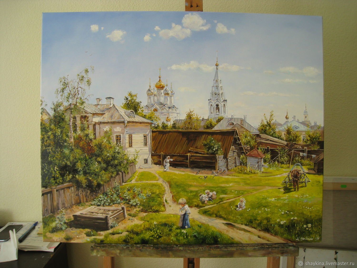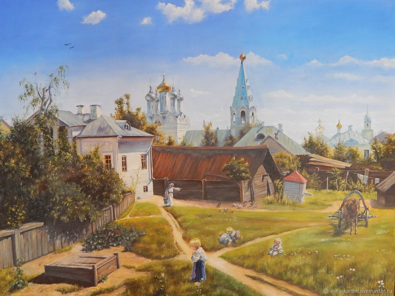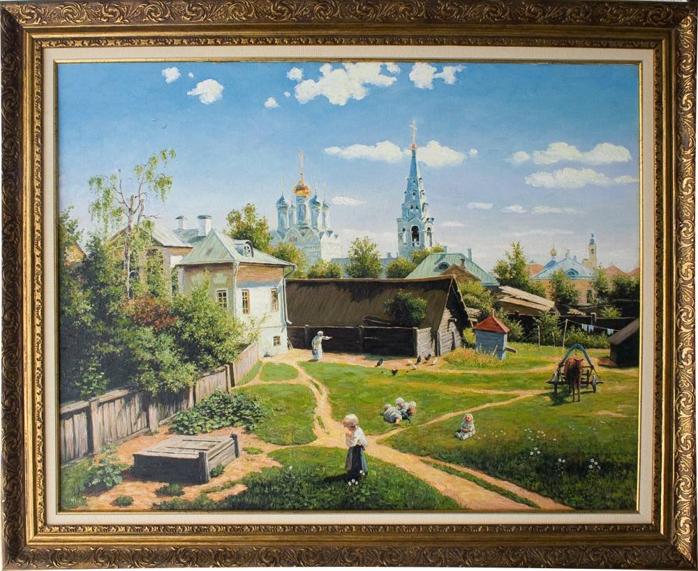"Московский дворик" - это картина, которая переносит нас в самое сердце столицы России. Она воплощает неповторимую атмосферу уютного и тихого дворика, где время остановилось, а жизнь продолжается в своем ритме. На полотне можно увидеть дома с яркой московской архитектурой, скромные балконы, расписанные фонарики и цветочные клумбы. Особое внимание уделено деталям: старые деревянные лавочки, милые кошки и птицы, прогуливающиеся по двору. Взглянув на эту картину, мы можем почувствовать особенную атмосферу и душевность старой Москвы, которая до сих пор сохраняется в этих уютных двориках.
