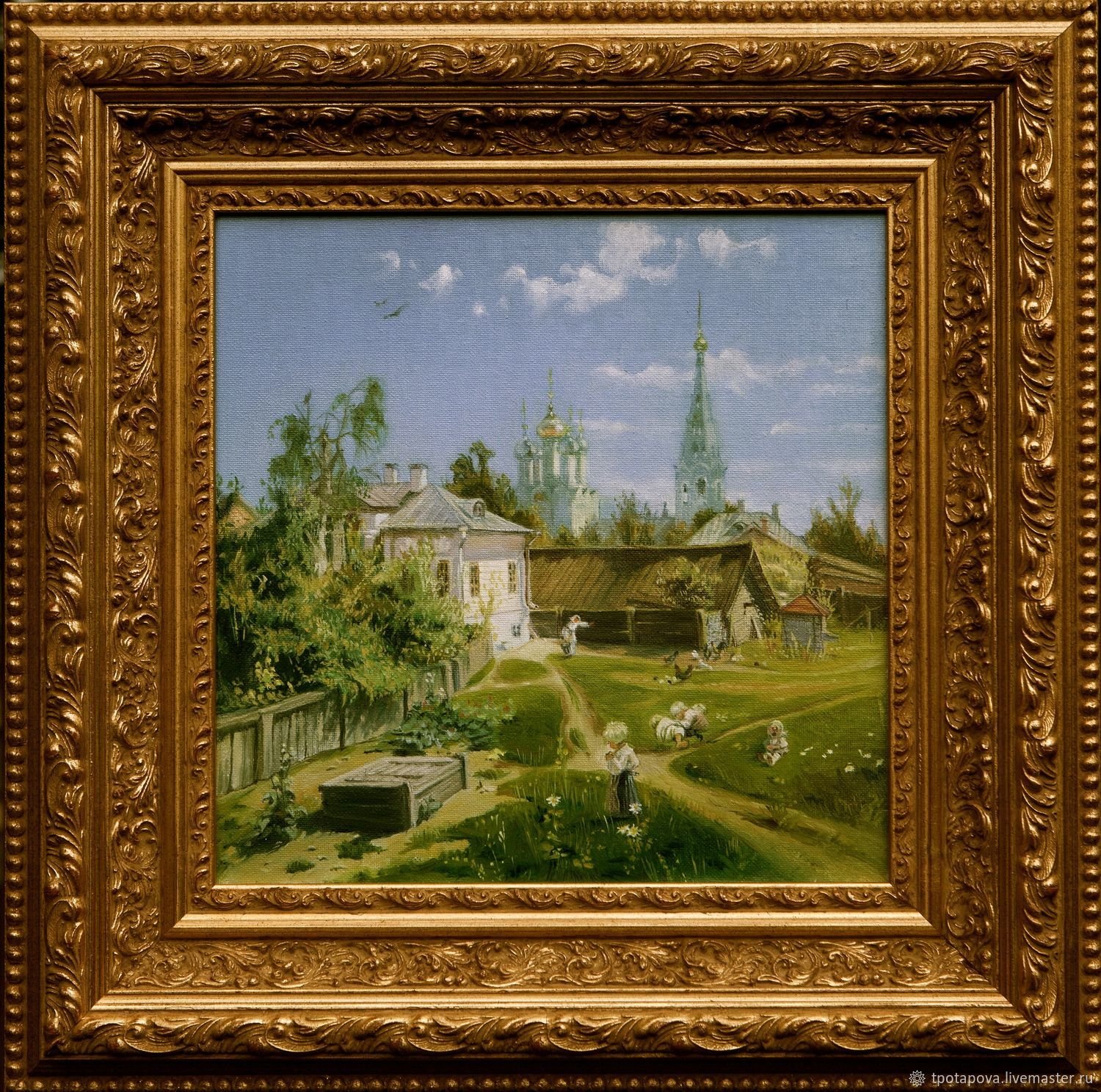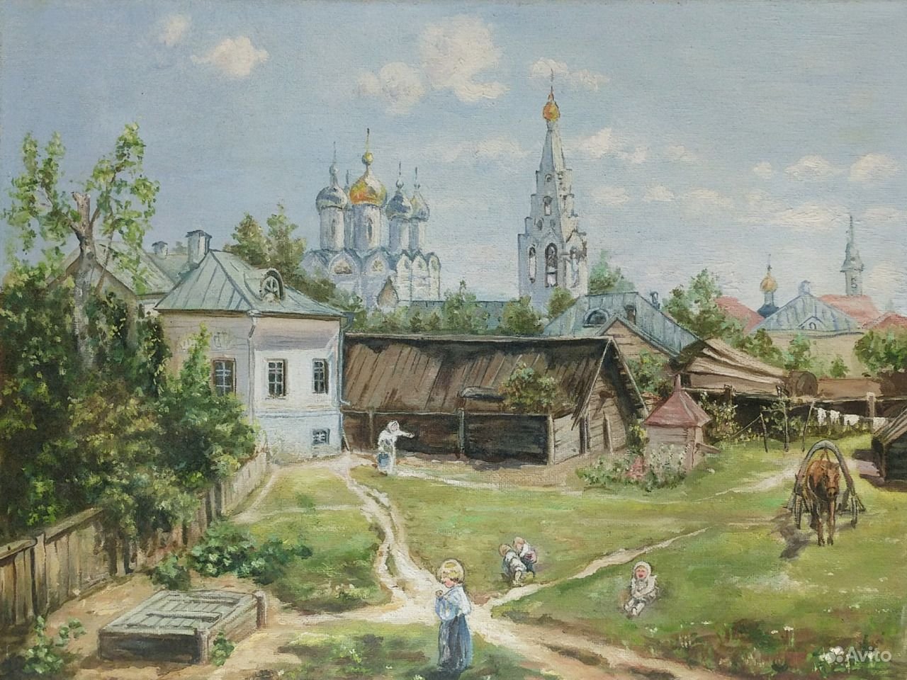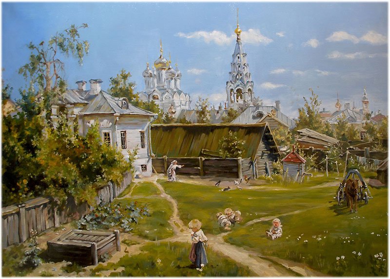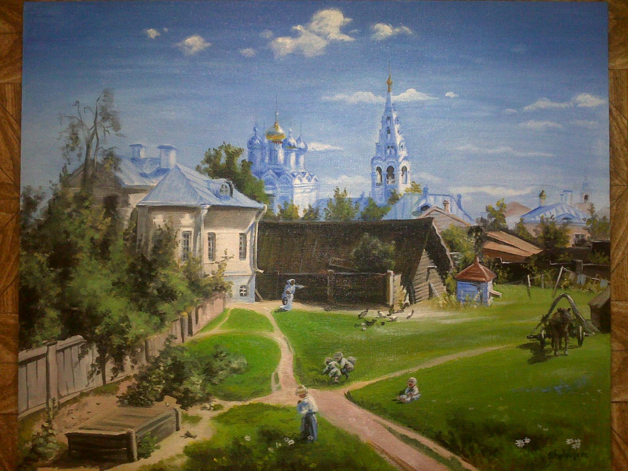 "Московский дворик" - это картина, которая переносит нас в самое сердце столицы России. Она воплощает неповторимую атмосферу уютного и тихого дворика, где время остановилось, а жизнь продолжается в своем ритме. На полотне можно увидеть дома с яркой московской архитектурой, скромные балконы, расписанные фонарики и цветочные клумбы. Особое внимание уделено деталям: старые деревянные лавочки, милые кошки и птицы, прогуливающиеся по двору. Взглянув на эту картину, мы можем почувствовать особенную атмосферу и душевность старой Москвы, которая до сих пор сохраняется в этих уютных двориках.