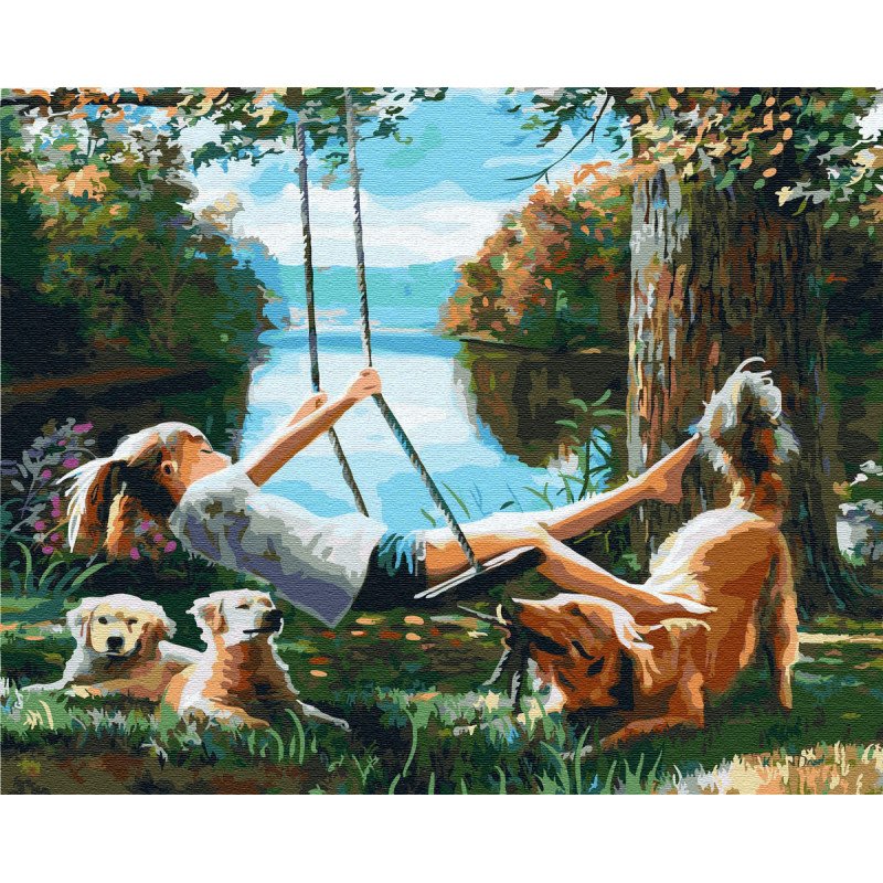 Собака на качелях живопись
