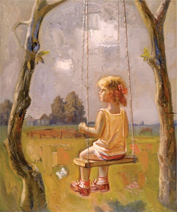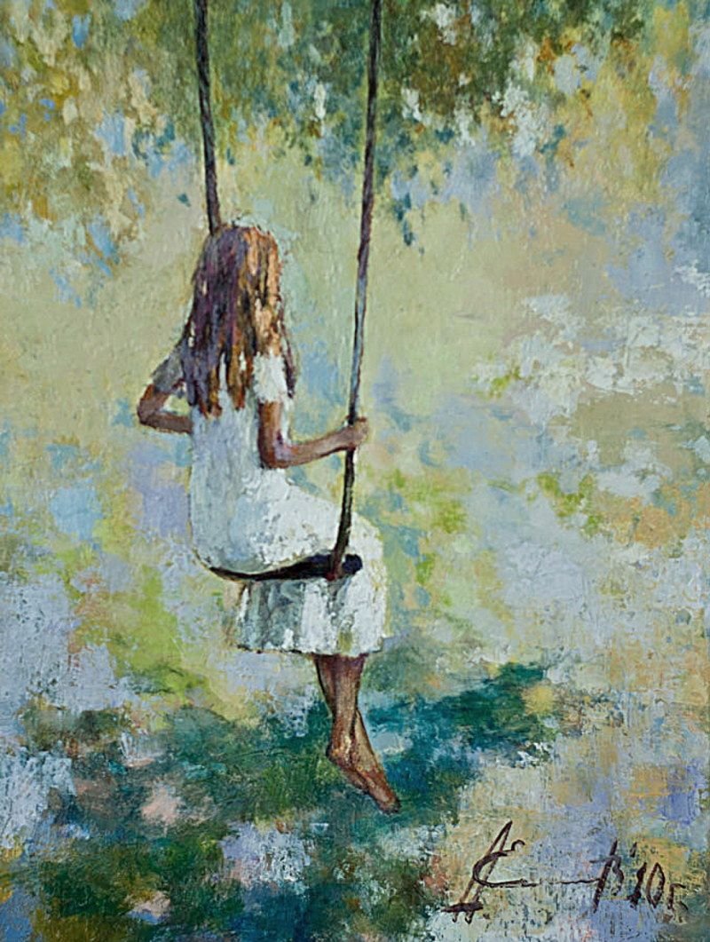 Девочка на качелях живопись