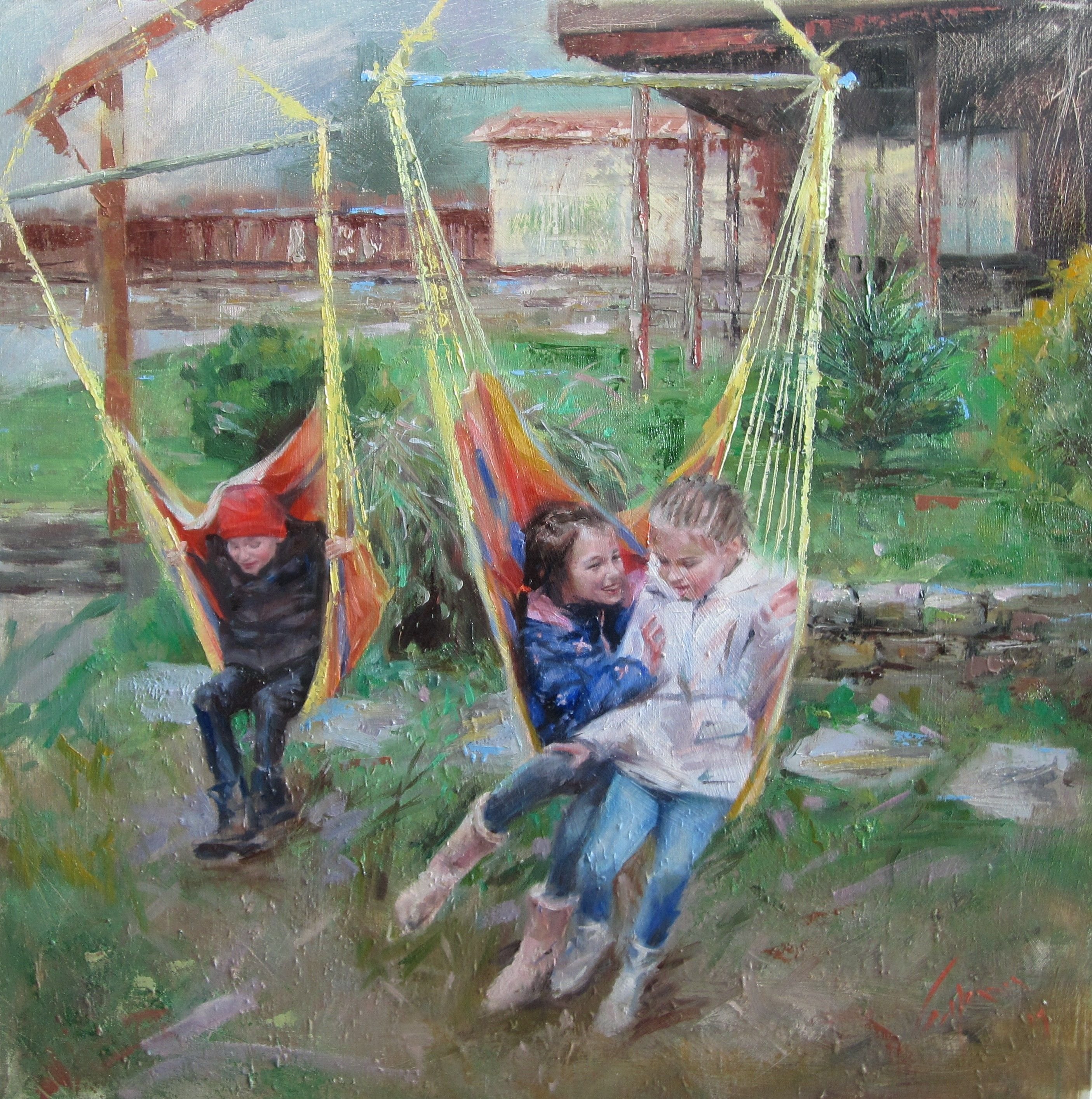 Живопись качели во дворе