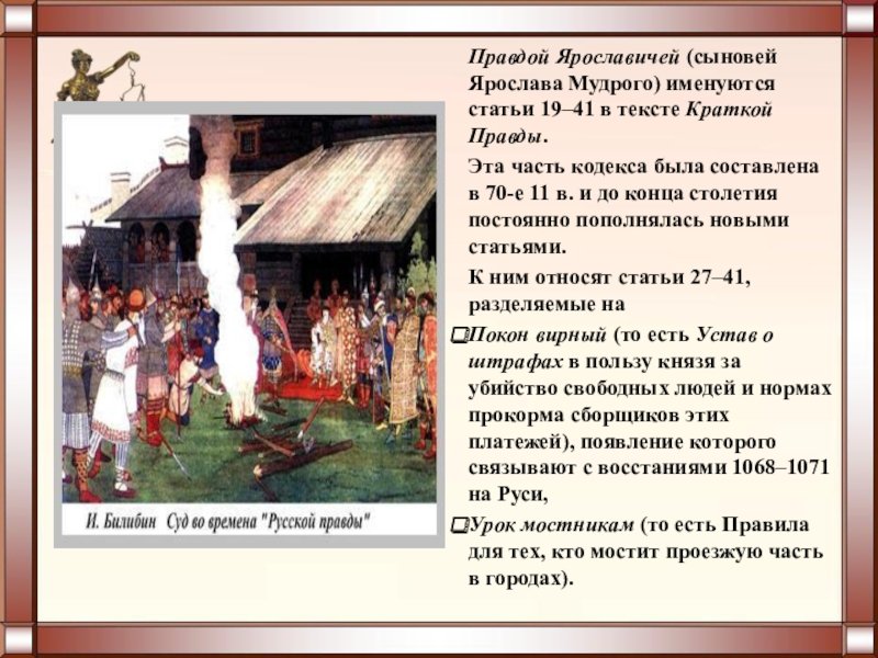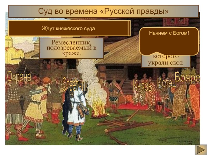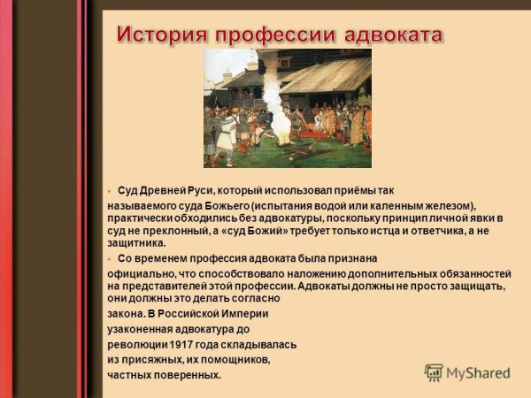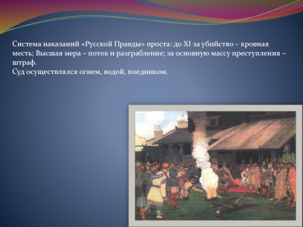 В средние века, во времена Русской правды, судебная система имела свои особенности и отличалась от современной. Судебные разбирательства проходили не в обычных зданиях, а под открытым небом или в специально отведенных местах. Картина судебного процесса того времени представляла собой живописный образ: на одной стороне стояли судьи в своих красочных рубашках, а на другой - обвиняемый, готовый показать свою невиновность. Вокруг собирались люди, чтобы наблюдать за процессом и высказывать свое мнение. От исхода суда зависели судьбы людей, и это создавало напряженную и драматическую атмосферу. В целом, картина суда во времена Русской правды отражает особенности того времени и позволяет представить, каким был судебный процесс в прошлом.