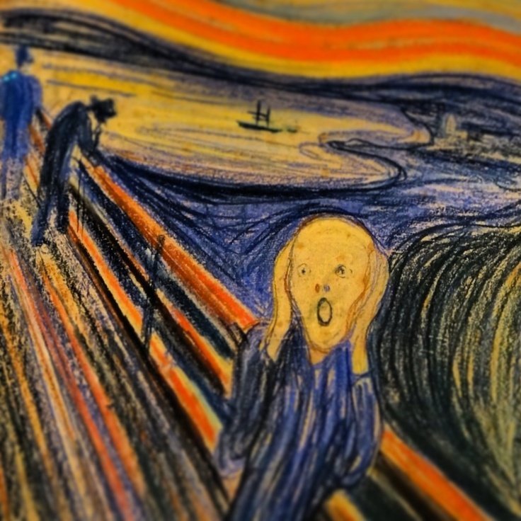 Крик - знаменитая картина норвежского художника Эдварда Мунка, созданная в 1893 году. Это исторически значимая работа, которая стала одной из наиболее узнаваемых и интерпретируемых картин мирового искусства. На этой картины изображен человек, который сжимает лицо руками и выпускает пронзительный крик. От образа передается ощущение страха, тревоги и отчаяния, что делает ее настоящим символом эмоциональной нестабильности и душевных мук. Яркие контрасты и яркие краски, использованные в работе, также добавляют к эффекту и вызывают ощущение глубокой эмоциональной напряженности. Картина "Крик" является не только великим произведением искусства, но и важным символом выражения внутреннего мира человека и его борьбы с темными эмоциями.