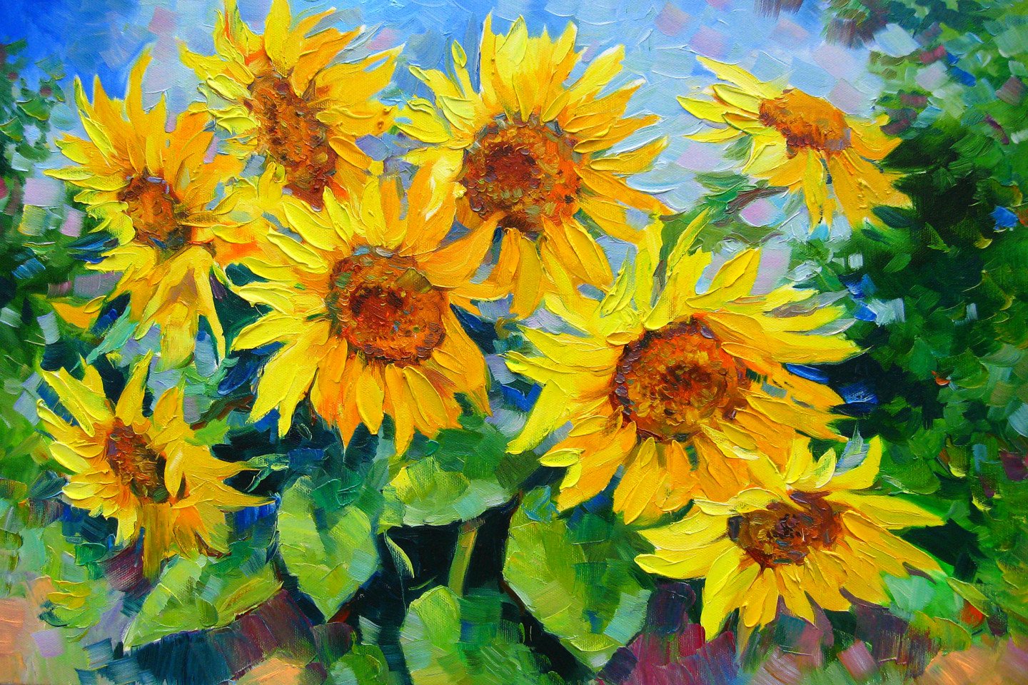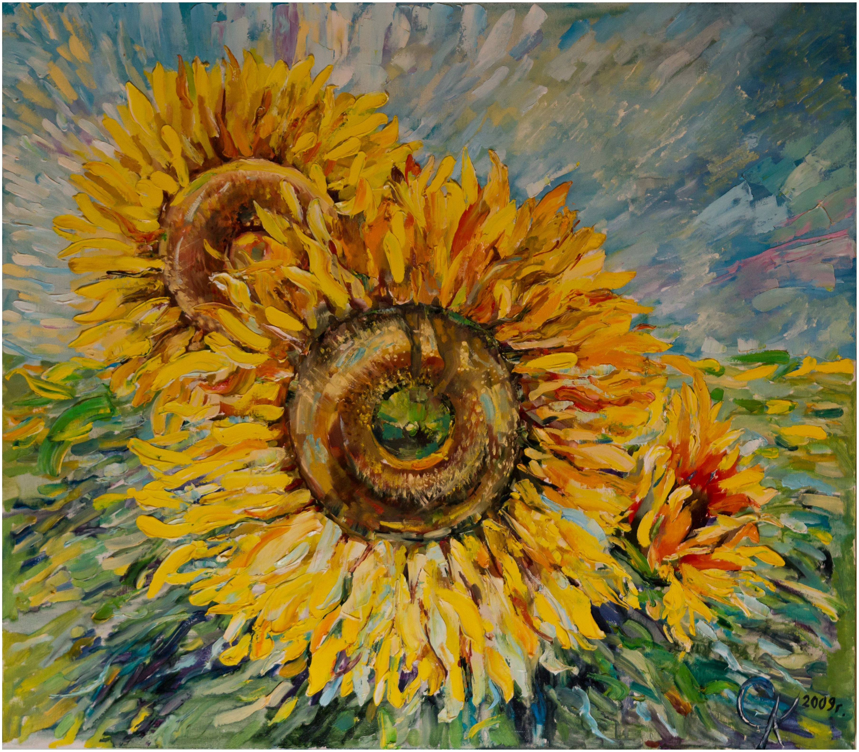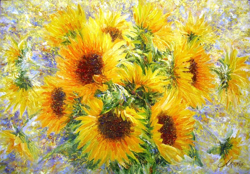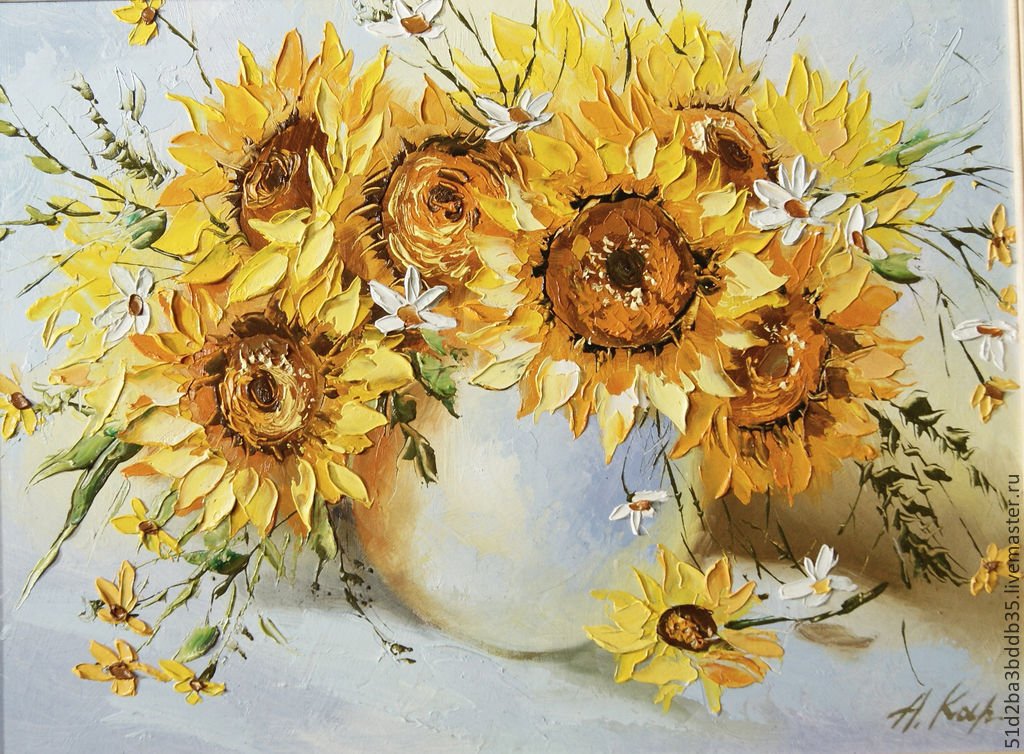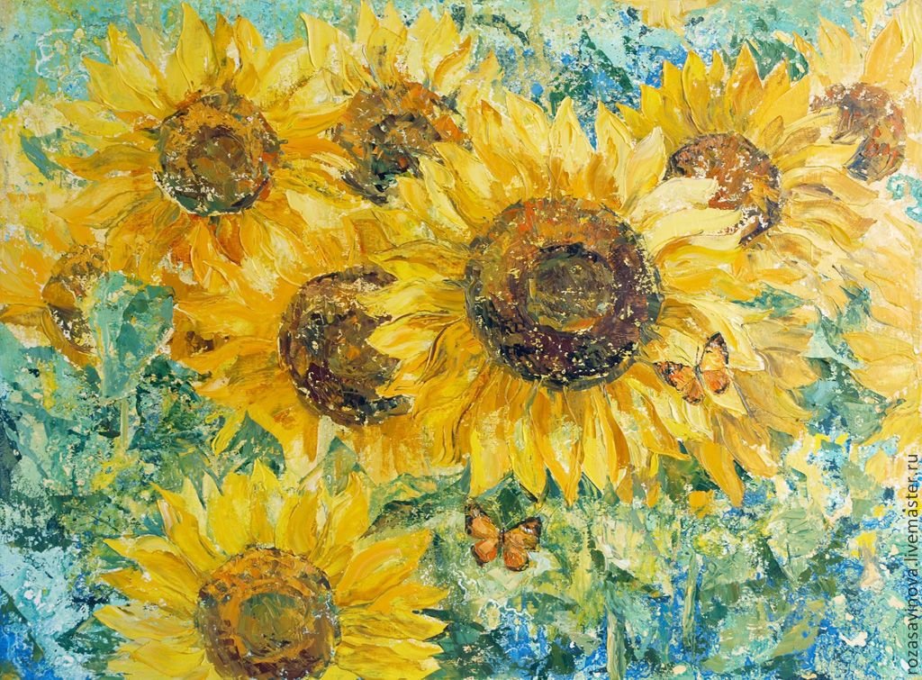 Подсолнухи маслом мастихином