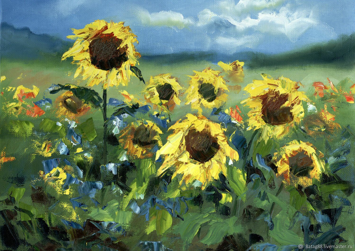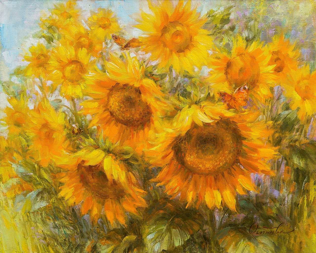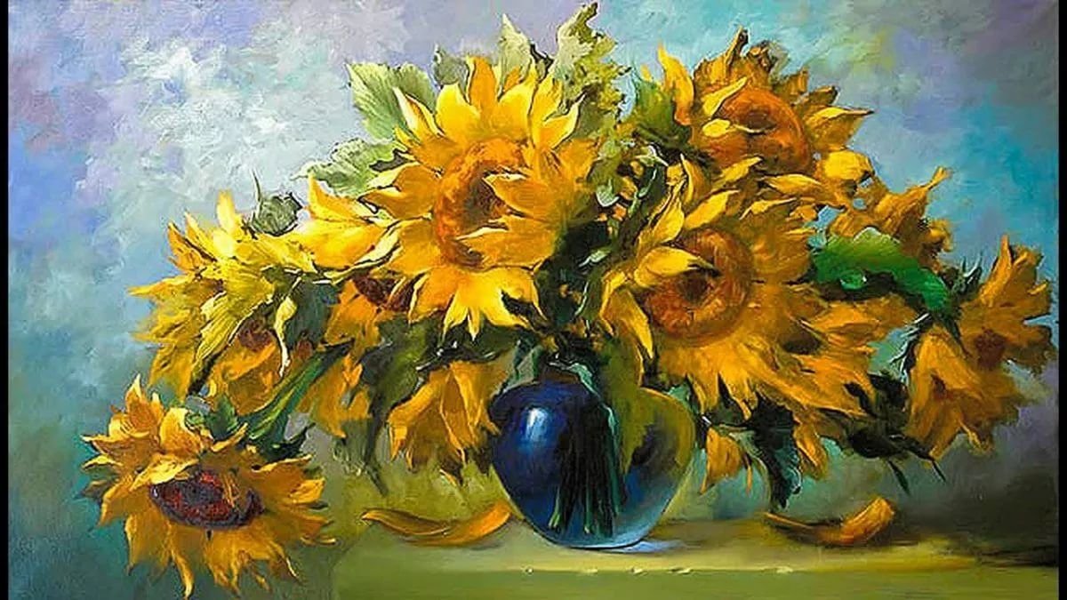 Художник Южаков Подсолнухи маслом