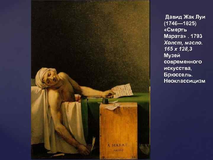 Классицизм. Жак-Луи Давид «смерть Марата»