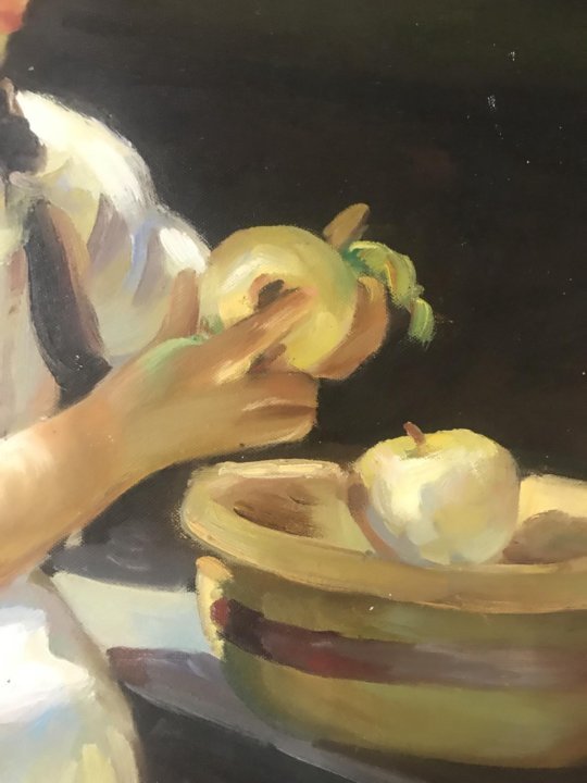 "Девушка с яблоками" - это удивительное произведение искусства, которое захватывает взгляд и возбуждает воображение. На этой картина представлены яркие цвета и гармоничная композиция, воплощенные в мастерстве художника. Главной героиней произведения является загадочная девушка, окруженная сочными и аппетитными яблоками. Она погружена в свои мысли, создавая ощущение тайны и загадки. Картина приковывает внимание и вызывает интерес к скрытым смыслам и символике. "Девушка с яблоками" - это произведение искусства, которое может вдохновить на размышления о жизни, силе притяжения и вечных вопросах человеческого бытия.