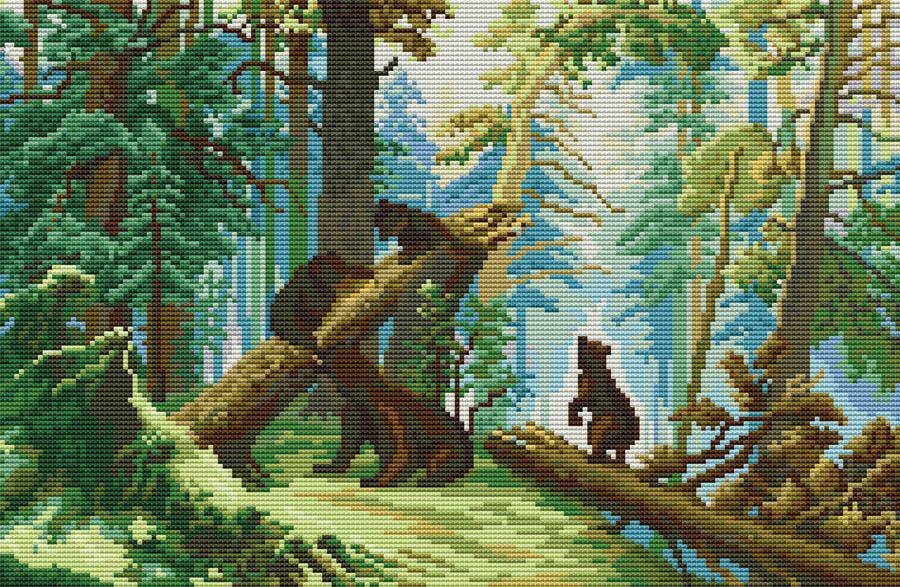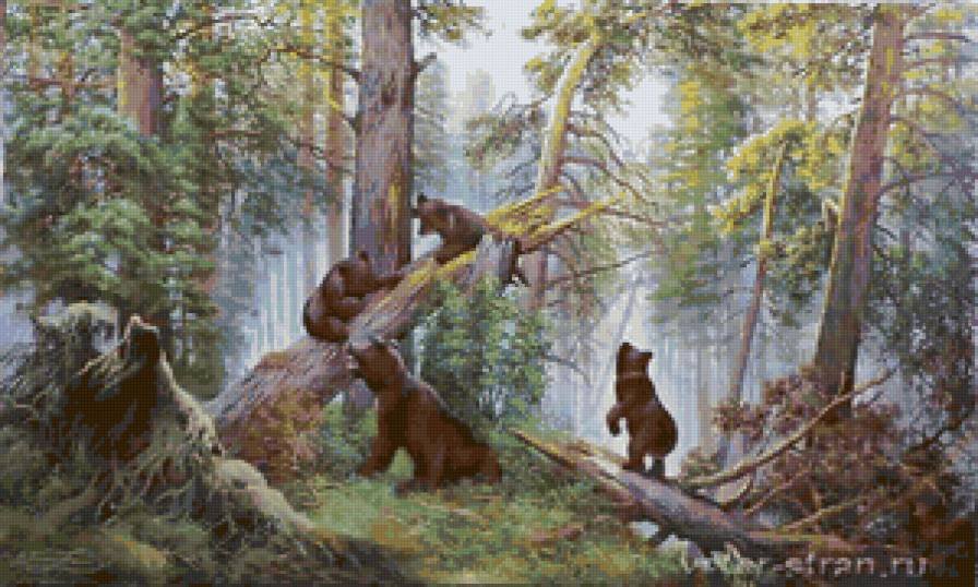 Сосновый Бор вышивка крестом Шишкин утро в Сосновом Бору