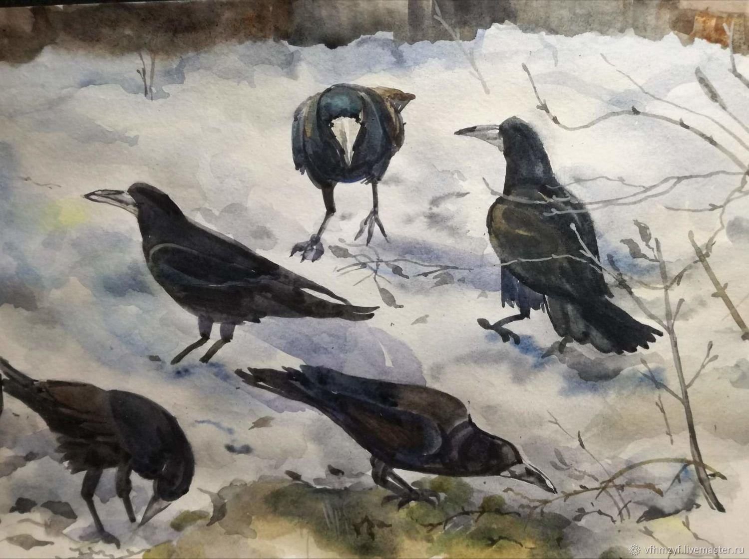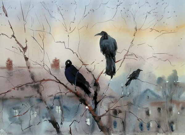 Грачи акварель