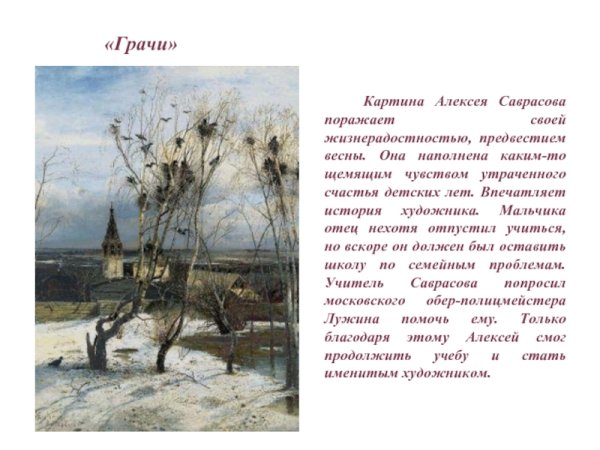 Рассказ о картине Алексея Саврасова Грачи прилетели