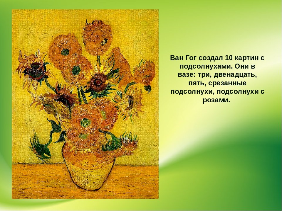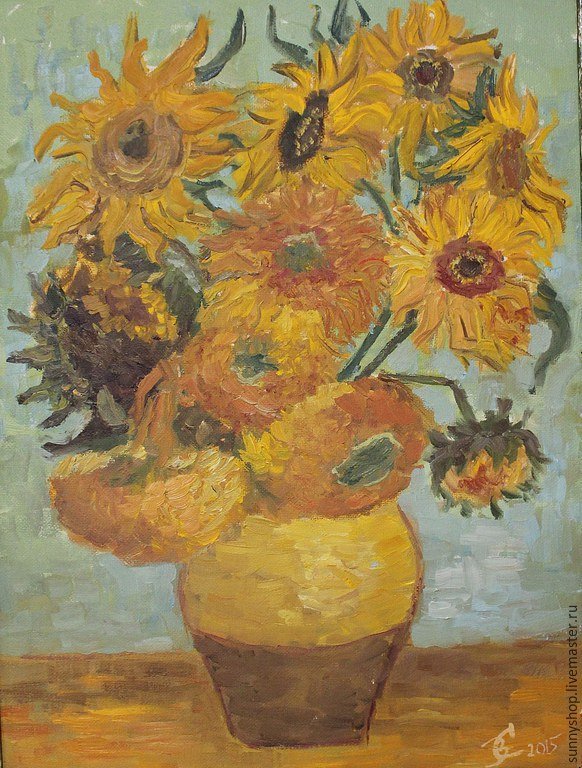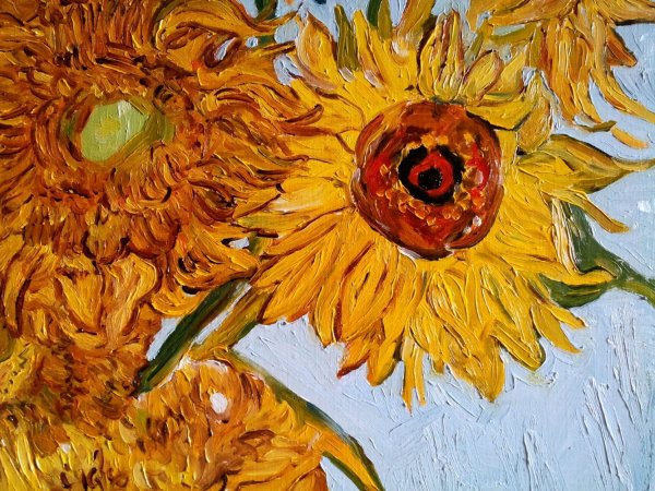 "Подсолнухи" - одна из самых известных картин великого художника Винсента Ван Гога. Это произведение искусства было создано в 1888 году в Арле, в южной части Франции. Картина "Подсолнухи" изображает букет подсолнухов, установленный в простой глиняной вазе. Ван Гог использовал яркие и насыщенные цвета, чтобы передать свои эмоции и переживания. Композиция картины проста, но в то же время имеет сильное воздействие на зрителя, благодаря выразительности и силе каждого отдельного цветка. Она стала символом оптимизма, радости и жизненной энергии, а также одной из самых дорогих картин в мире. Картина "Подсолнухи" Ван Гога продолжает восхищать и вдохновлять людей уже более столетия.