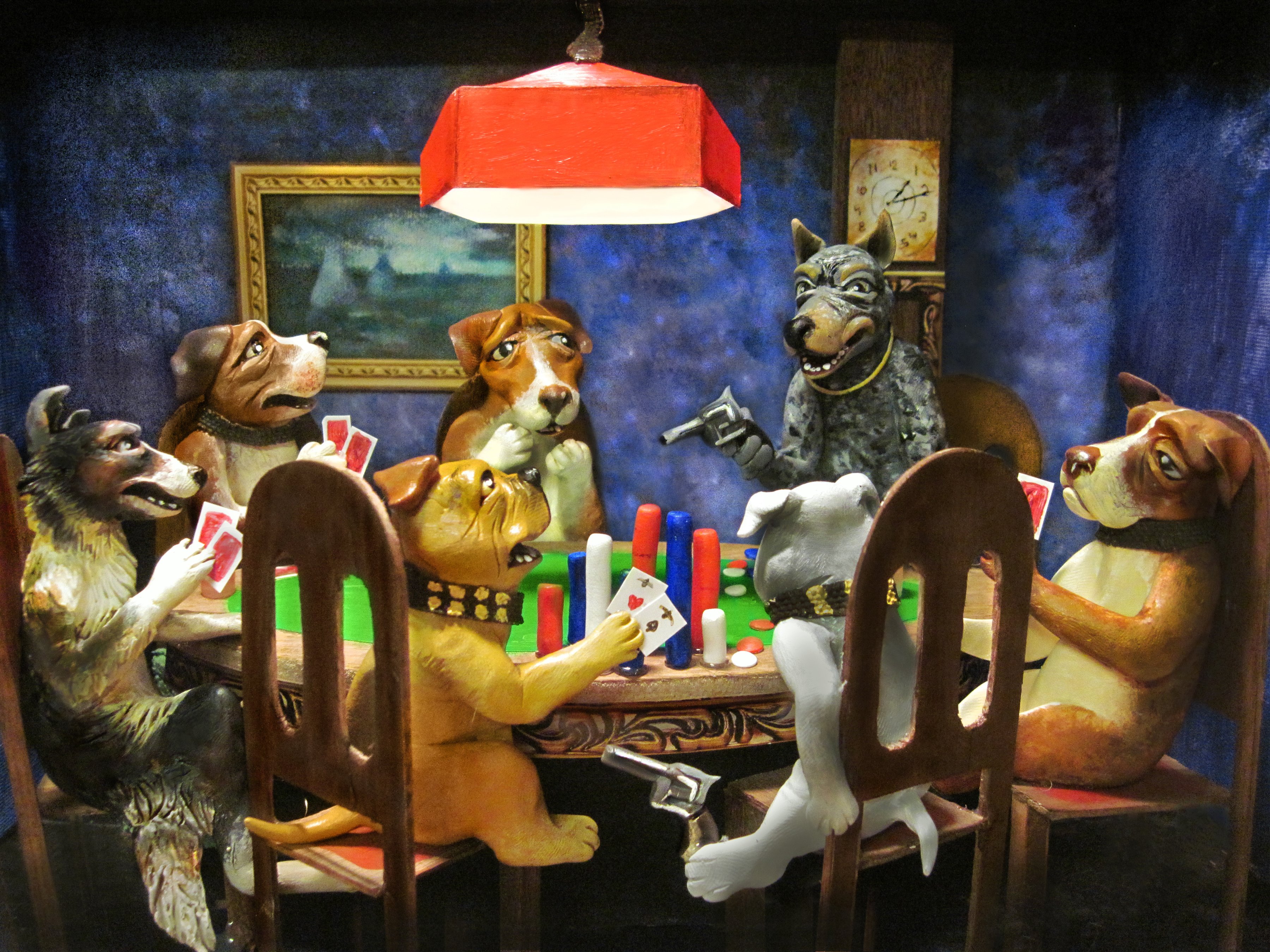 Кассиус Маркеллус Кулидж собаки играют в Покер