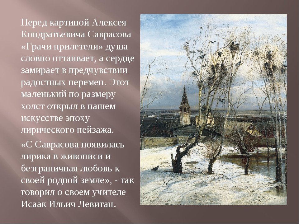 Алексей Кондратьевич Саврасов Грачи прилетели