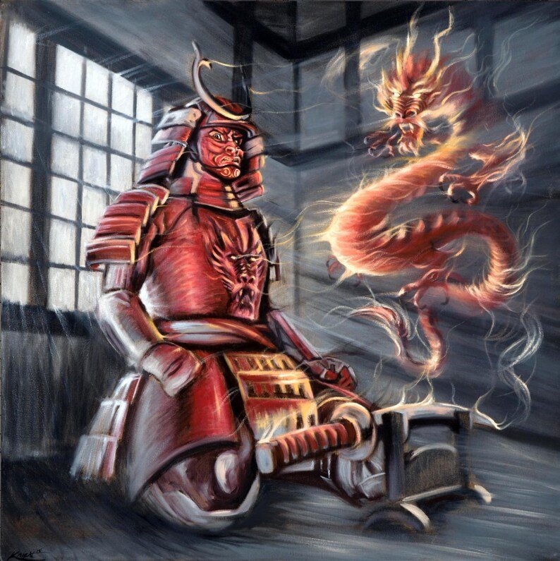 Самурай японский дракон арт