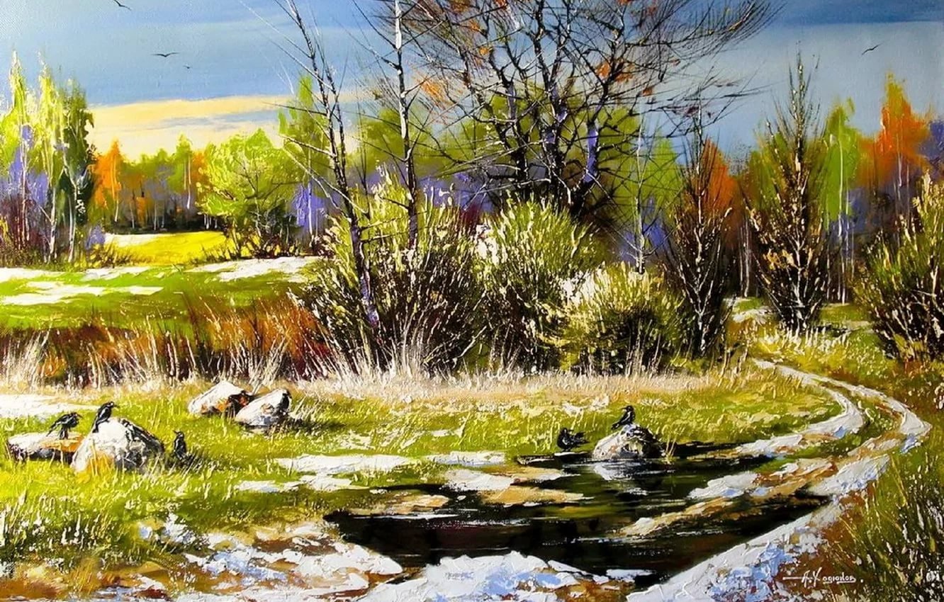 Весенняя картина – это волшебное произведение искусства, которое отображает прекрасную природу в ее самом ярком и живописном проявлении. На этой картине можно увидеть нежно-зеленые листочки на деревьях, цветущие цветы различных оттенков и буйные травы, радующие глаз своей сочностью. Воздух наполнен ароматом цветущих растений, а птицы щебечут в ветвях, создавая мелодичный концерт. Весенняя картина - это воплощение обновления и пробуждения природы после долгой зимы, она передает чувство радости, свежести и возрождения. Обладая яркими и насыщенными красками, эта картина способна подарить ощущение тепла и радости каждому, кто взглянет на нее. Она приносит в сердца людей надежду и веру в то, что всегда найдется место для новых начинаний и возможностей. Весенняя картина – это источник вдохновения и незабываемого восторга перед великолепием природы.