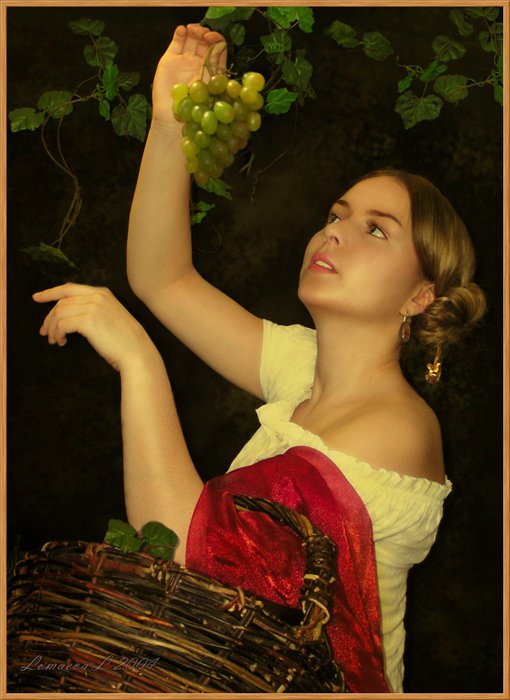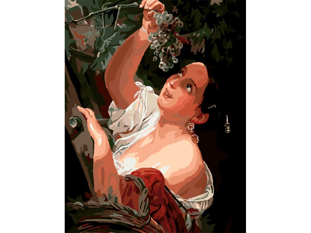 Наши глаза устремляются на эту красивую картину "Женщина с виноградом", которая вызывает в нас неподдельное восхищение. Это произведение искусства воплощает в себе нежность, элегантность и изящество, притягивая наше внимание и перенося нас в мир изысканных красок и аристократического шарма. Женская фигура, окруженная виноградными лозами, создает ощущение гармонии и благополучия. Каждая деталь тщательно проработана художником, отражая его мастерство и взгляд на женскую красоту. Эта картина станет настоящим украшением любого интерьера и пробудит в нас чувство восторга и вдохновения.