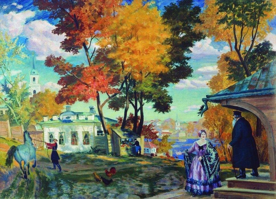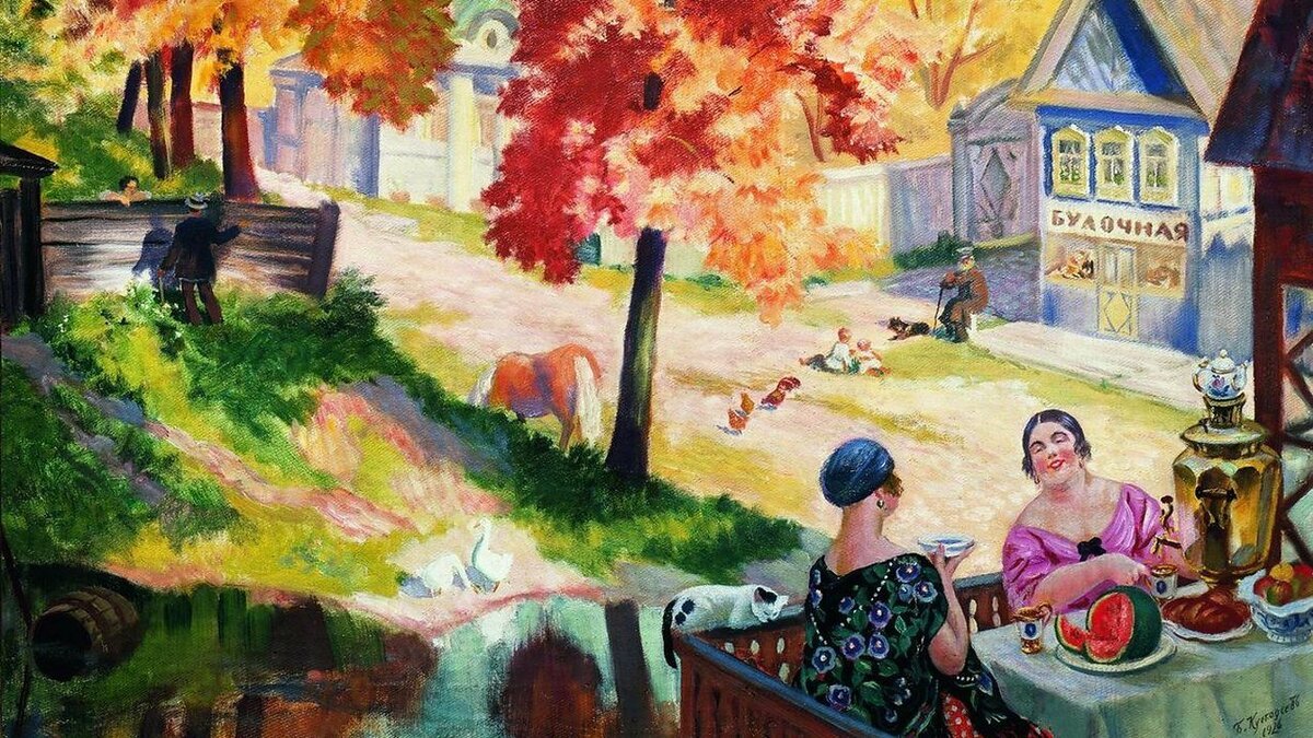 Б. Кустодиев. Осень в провинции. Чаепитие. 1926.