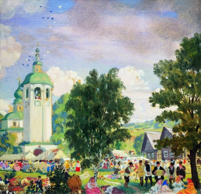 Борис Кустодиев «встреча (Пасхальный день)» , 1917 год