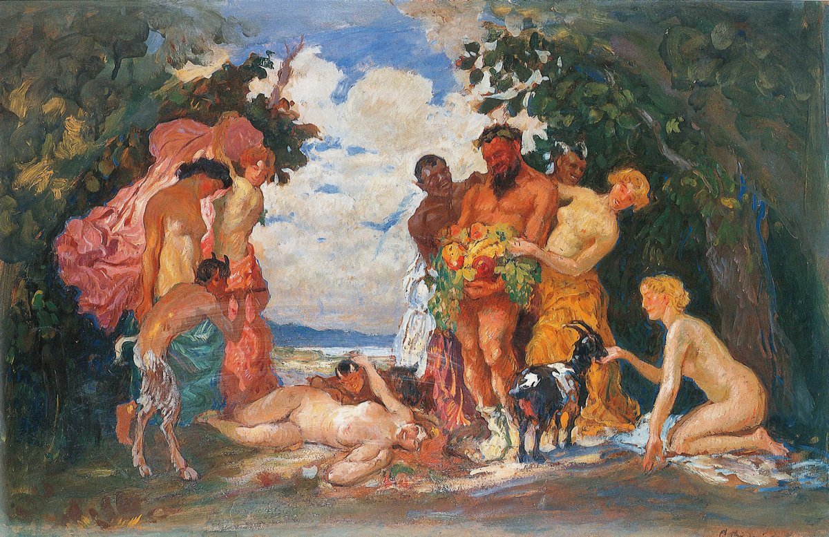 Картина "Вакханалия" - это произведение искусства, которое поражает своей энергией и динамикой. На этом полотне художник передает атмосферу праздника и разврата, которые традиционно связываются с культом Бахуса, бога вина и веселья. Возможно, самое заметное в этой картине - это фигура главного персонажа, который выглядит как Бахус или может быть его жрица. Он окружен группой людей, празднующих и веселящихся, поглощенных чувственными удовольствиями и экстазом. Картина яркая и колоритная, с мощными кистевыми штрихами, передающими движение и эмоции. "Вакханалия" - это произведение искусства, стимулирующее воображение и вызывающее интерес к истории и мифологии.