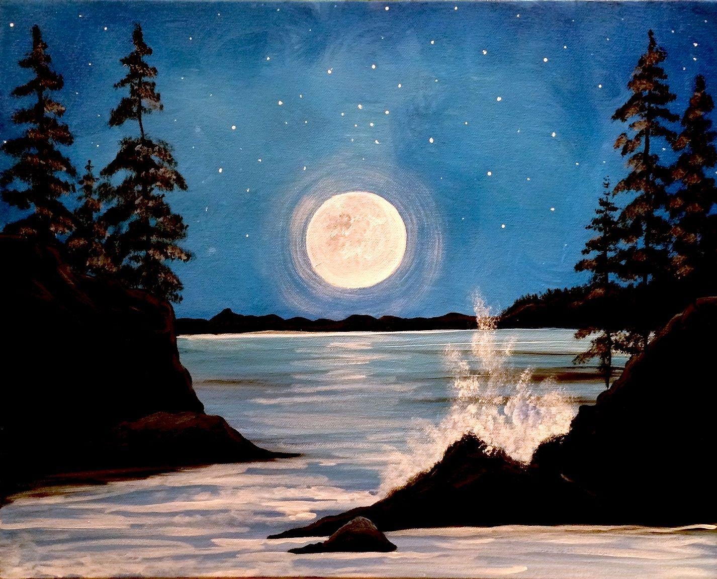 Ночь Луна живопись