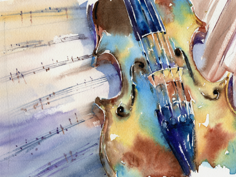 Скрипка акварель