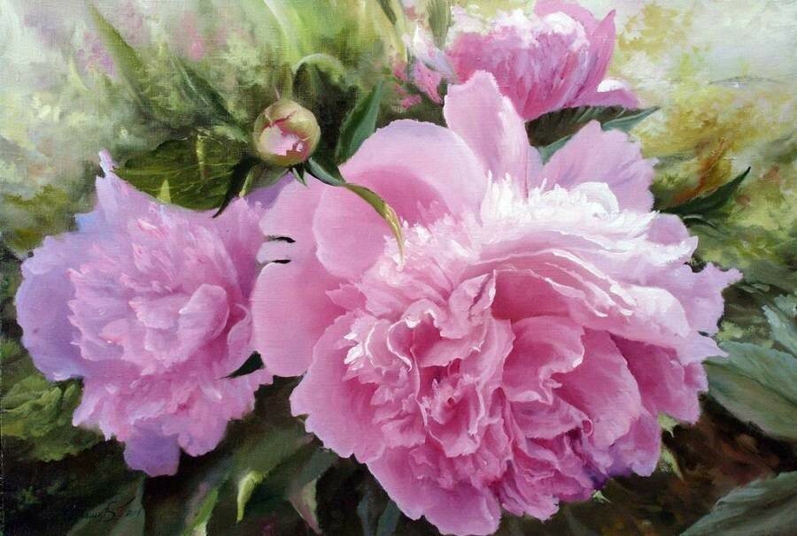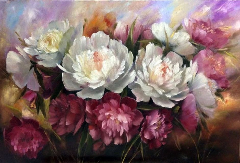 Фото картин маслом цветы пионы