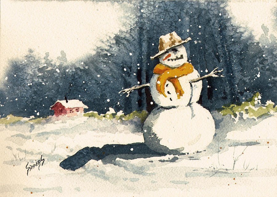 Снеговик живопись