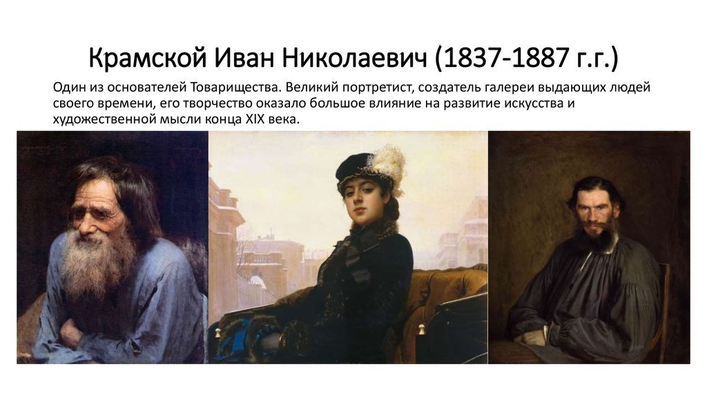 Картины Крамского – это произведения искусства, созданные русским художником Иваном Николаевичем Крамским в XIX веке. Крамский был одним из выдающихся представителей поколения исполнителей переходного периода от академической живописи к реализму. В его работах прослеживается глубокая эмоциональность и лиричность, а также мастерство в передаче светотени и настроения. Картины Крамского часто отражают повседневную жизнь, портреты и пейзажи, но всегда с особой интеллектуальной и эстетической нагрузкой. Они являются значимым наследием русской живописи и ценятся как объекты искусства и истории.