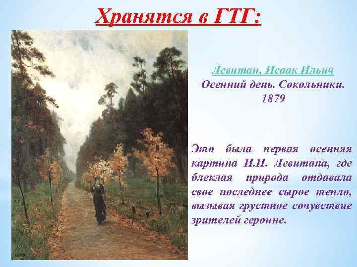 Левитан Исаак Ильич 1860 - 1900 «осенний день. Сокольники»