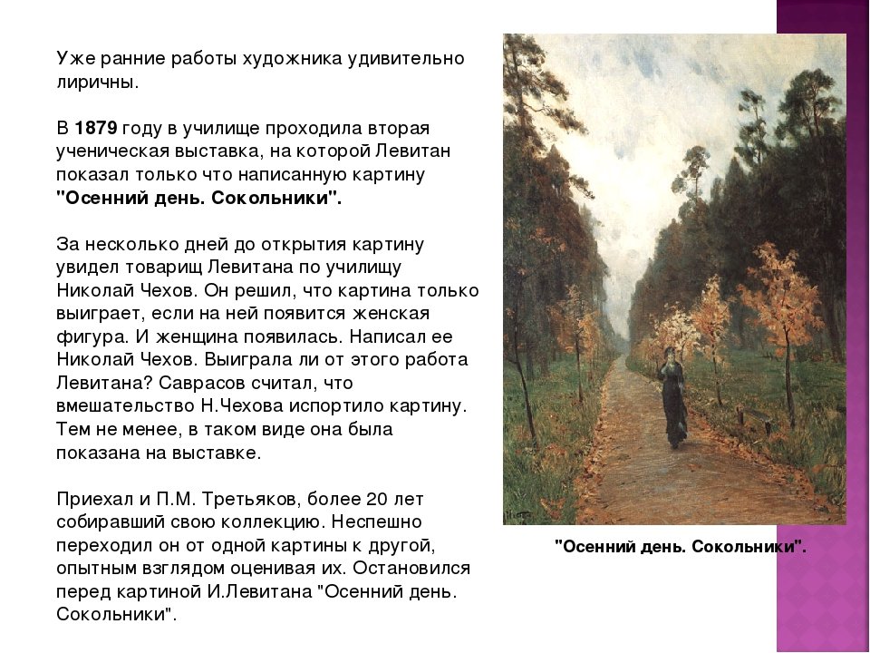 Исаак Левитан, «осенний день. Сокольники»,1879