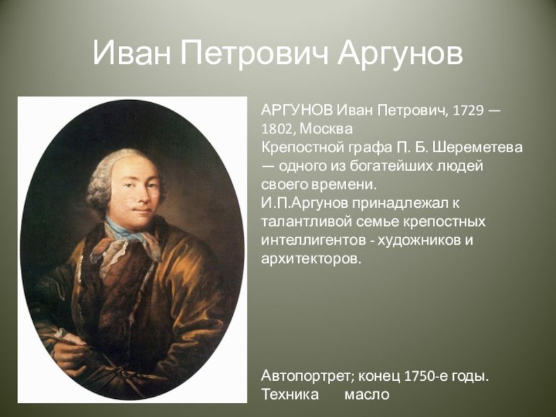 Иван Петрович Аргунов (1729—1802) русский живописец, портретист