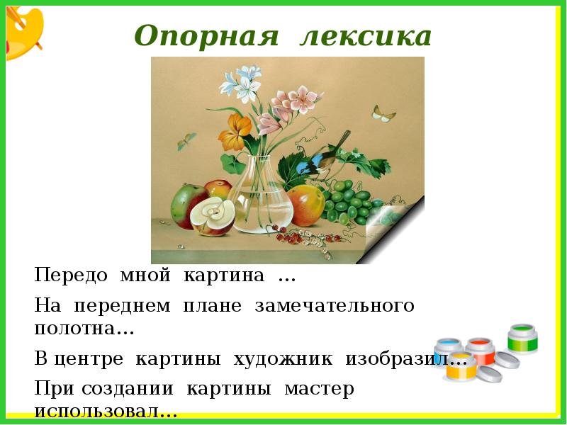 Сочинение по картине цветы фрукты птица