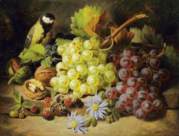 Картина ф Толстого цветы фрукты птица