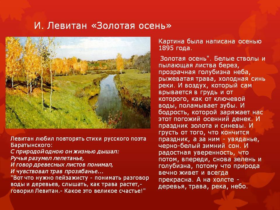 Русский язык 4 класс описать картину Левитана Золотая осень