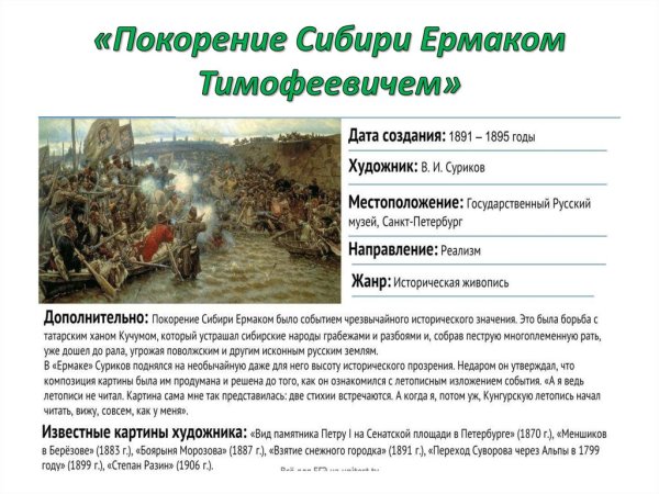 Василий Иванович Суриков покорение Сибири Ермаком Тимофеевичем