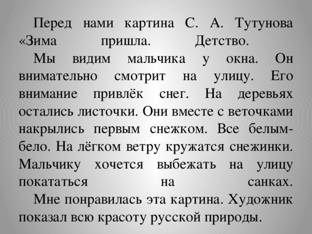 Сочинение по картине Тутунова зима пришла детство 2 класс